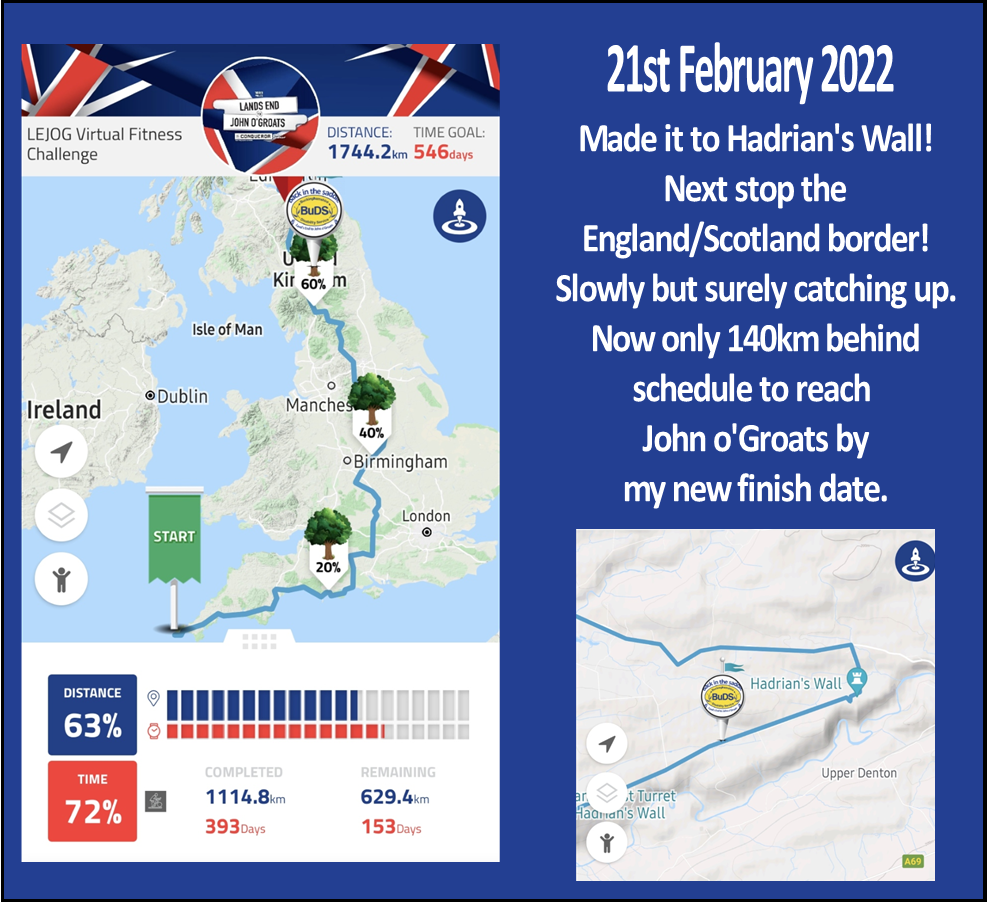 On Monday I reached the next checkpoint at Hadrian’s Wall, on my exercise bike challenge (covering the distance from Land’s End to John o’Groats). The route from Bradford took me through Penrith. Strange to think that in 2013 we actually cycled through there in real life on our family holiday cycling the Coast2Coast route. I remember cycling through there very well because there was a very steep hill. I’m glad I don’t have to tackle all those hills on my exercise bike! Life has changed a lot since 2013, but positivity, amazing family and friends along with determination are keeping me going.